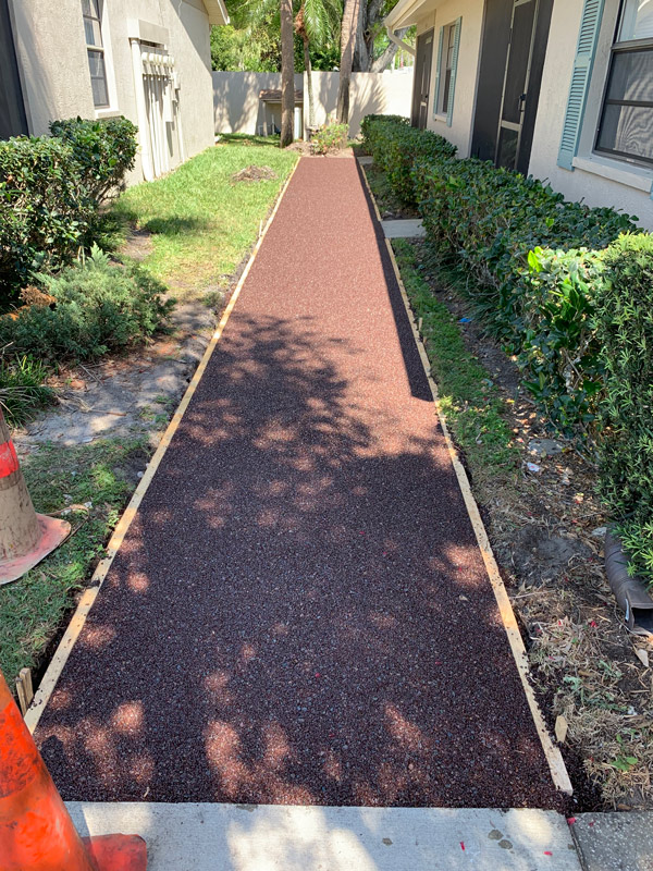 When this community had enough of flooding walks, they chose Laub’s Drainage & Flexi Pave Installers to solve their problem. After removing the existing side walk, we re-graded, install Hydraway Drainage system and Flexi Pave over top. Now they have an extremely pourus and durable surface with a high performance drainage product to remove the water.